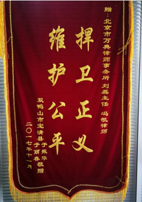 四份房屋征收补偿决定均被撤销,强有力地捍卫了四户农民的财产。随后,于先生等人也与当地政府部门协商一致,拿到了满意的补偿,并向万典律师刘磊、冯凯二位赠送锦旗,聊表谢意。