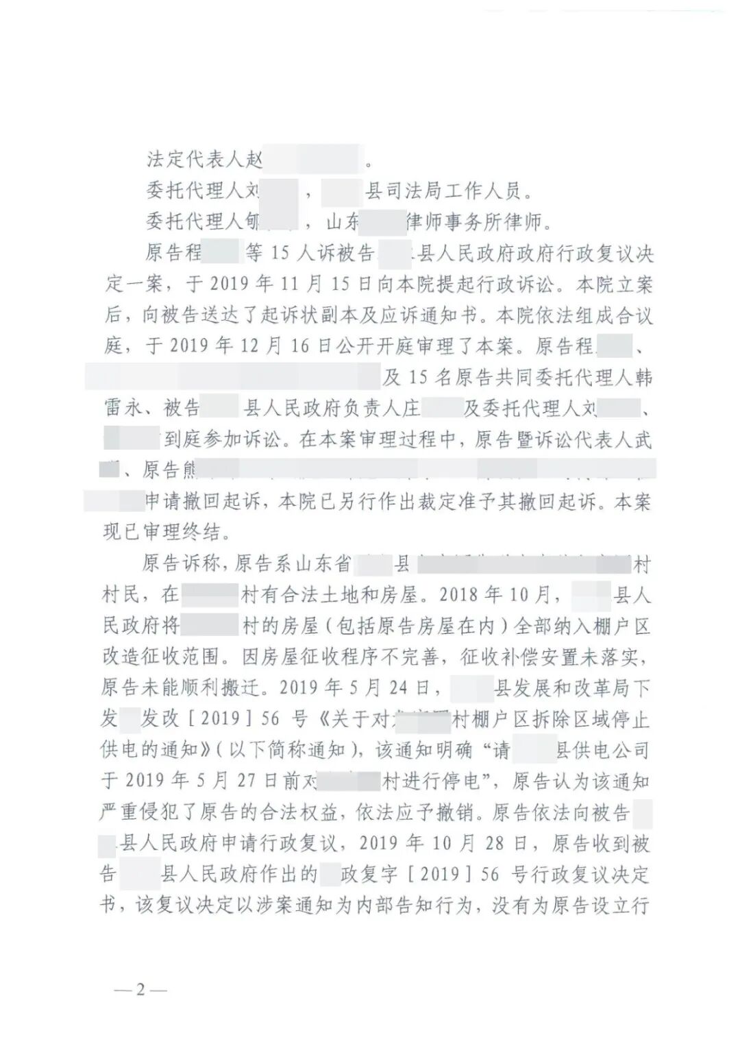 为了维护自身的合法权益,恢复供电,2019年11月05日,程x等人在万典律师协助下向临沂市中级人民法院提起行政诉讼。